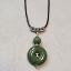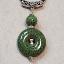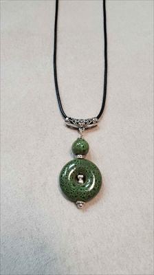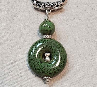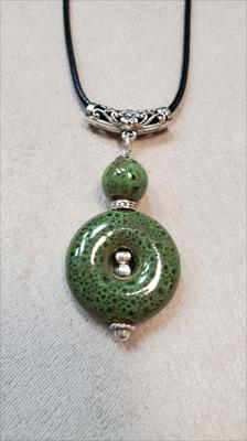 Зелёный кулон из керамики из дутой большой бусины с серединой собран вручную.