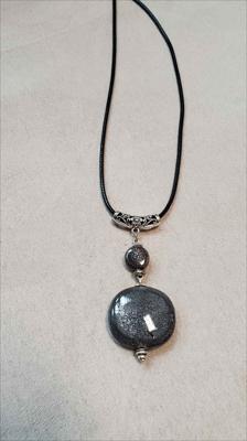 Серый кулон из керамики из дутой большой бусины и маленькой таблетки